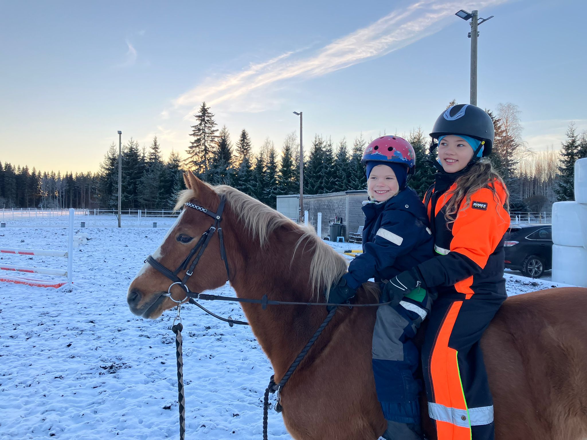Aiempi ratsastustausta ei pakollista. Tallilla lainattavissa muutamia kypäriä.